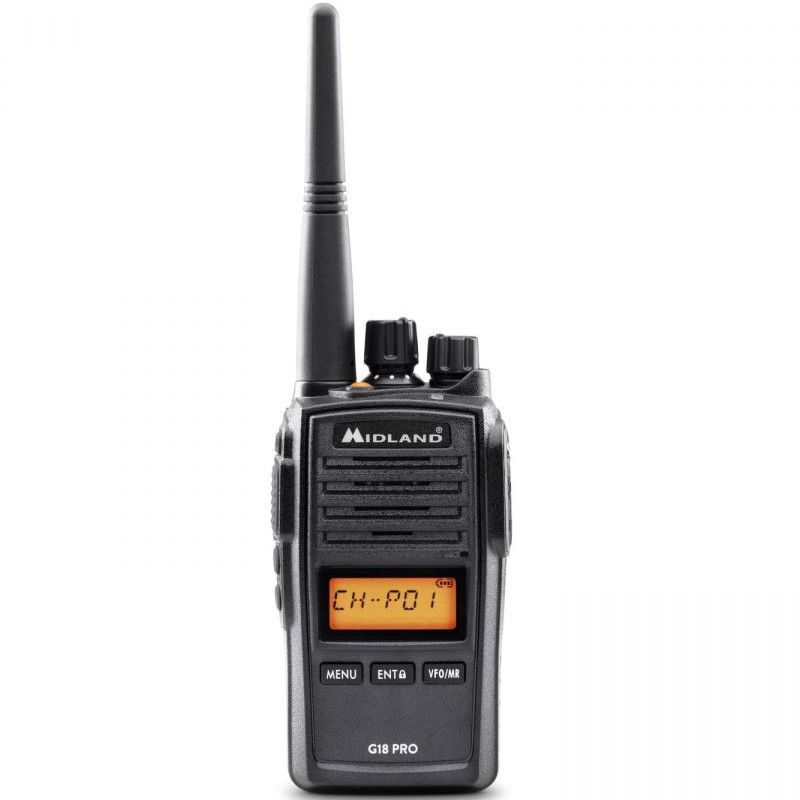 The Midland G18 Pro two-way radio is a very reliable and easy-to-use professional walkie-talkie with VOX and SCAN functions for hands-free communications.